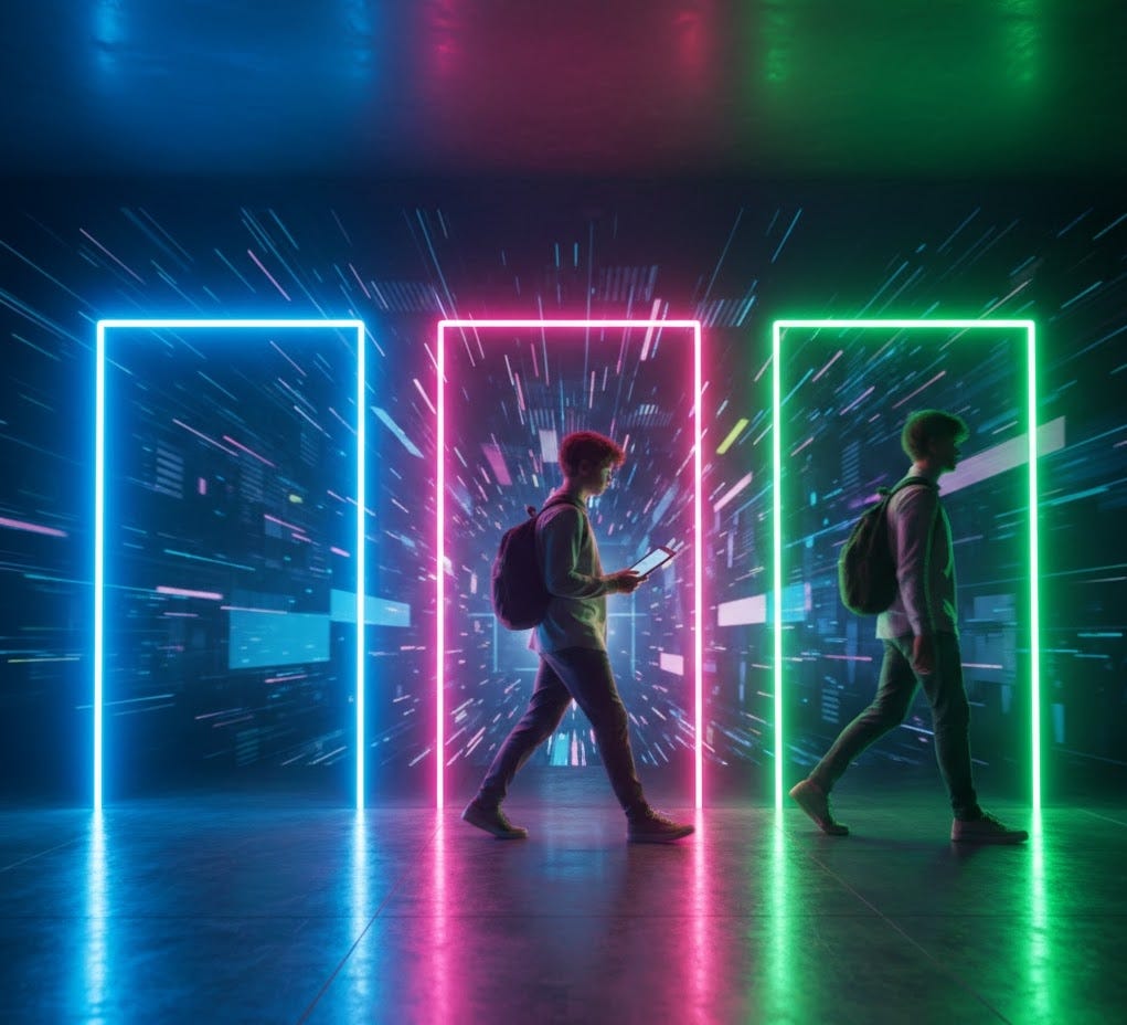 This disappearance act usually takes shape when students gradually distance themselves from their responsibilities by slipping into a frictionless comfort zone—a space I’ll call the second space. This space is quasi-digital and endlessly distracting, reaffirming students’ worst impulses while calmly diminishing their desire for deeper engagement. In our digital age, this retreat is effortless – escape is right there thanks to platforms clamoring for our attention. Compiling enough distractions in one’s everyday experience, be it through YouTube, Snapchat, or Discord, doesn’t erase academic responsibilities per se, but buries them behind a comforting barrage of curated content. The second space is where the embodied self recedes into the digital domain; it’s where our sense of control is safely outsourced to platform affordances and habitual gestures.